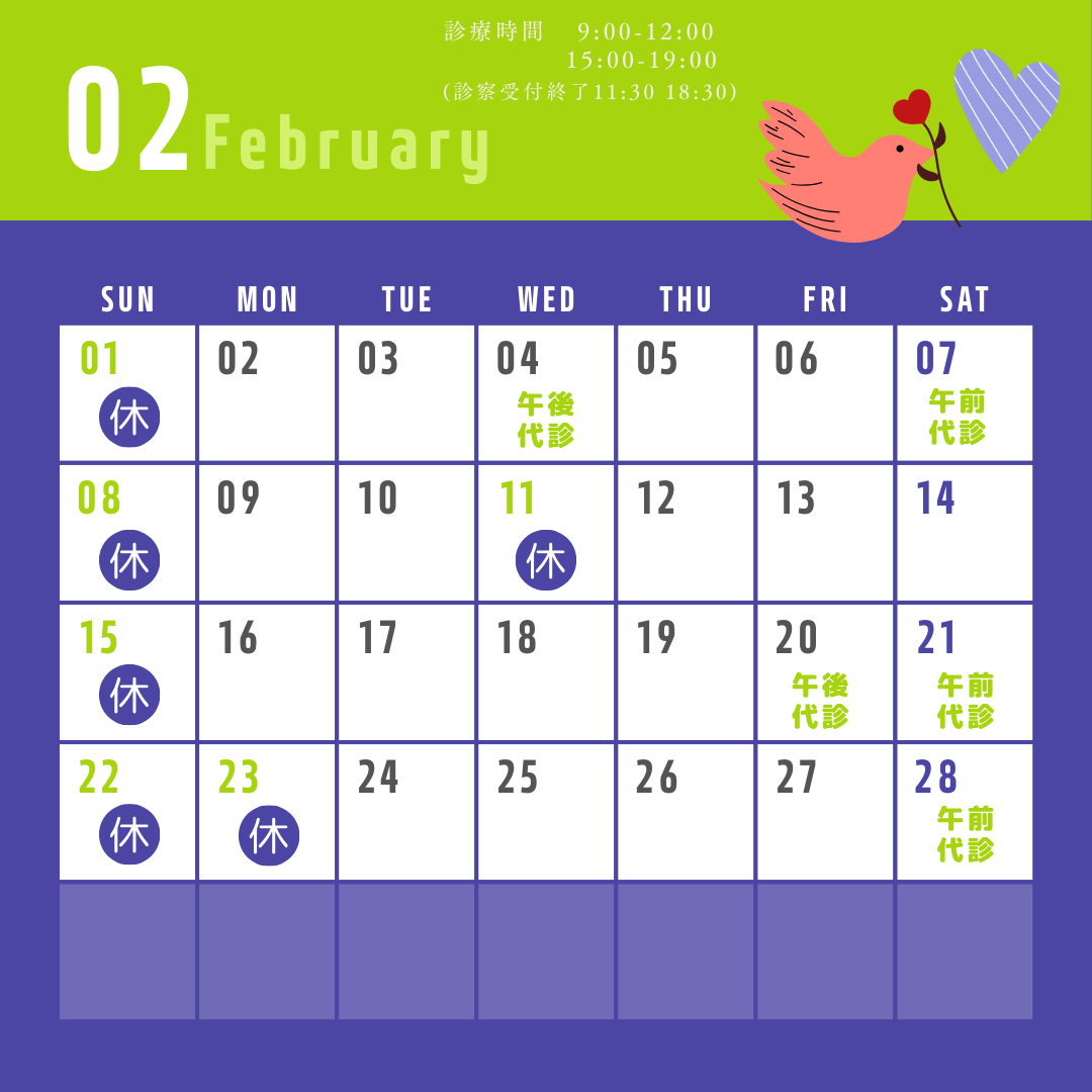 2月の外来予定表